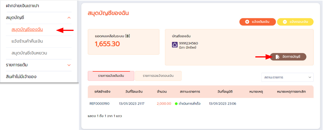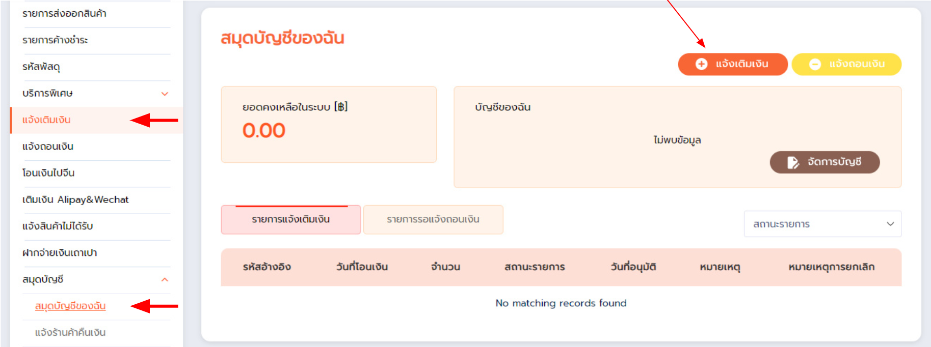 ลูกค้าต้องเติมเงินเข้าระบบเพื่อไว้ใช้ในการชำระค่าสินค้าและบริการในระบบที่เมนู "สมุดบัญชี > สมุดบัญชีของฉัน"