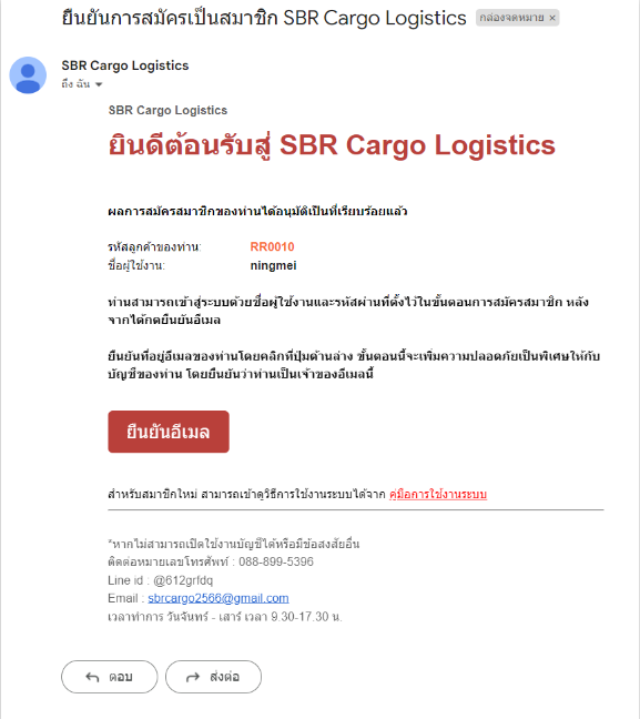 - SBR CARGO จัดส่งในนามบริษัท ไม่มีค่าใช้จ่ายเพิ่ม