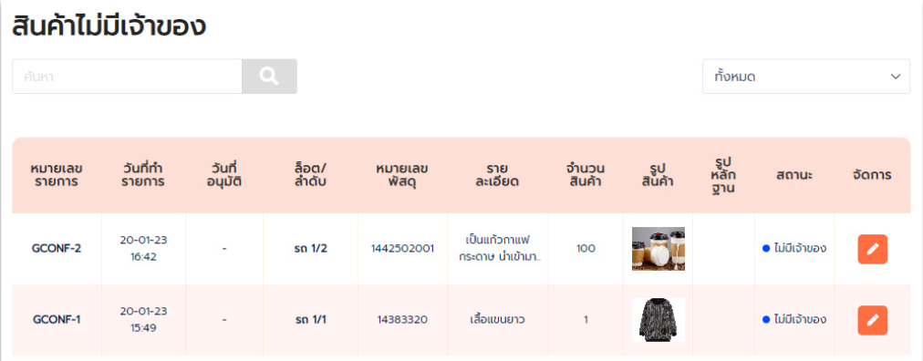 - เข้าเมนูรายการสินค้าไม่มีเจ้าของ หากพบว่าของชิ้นใดเป็นสินค้าที่ลูกค้าได้สั่งมา