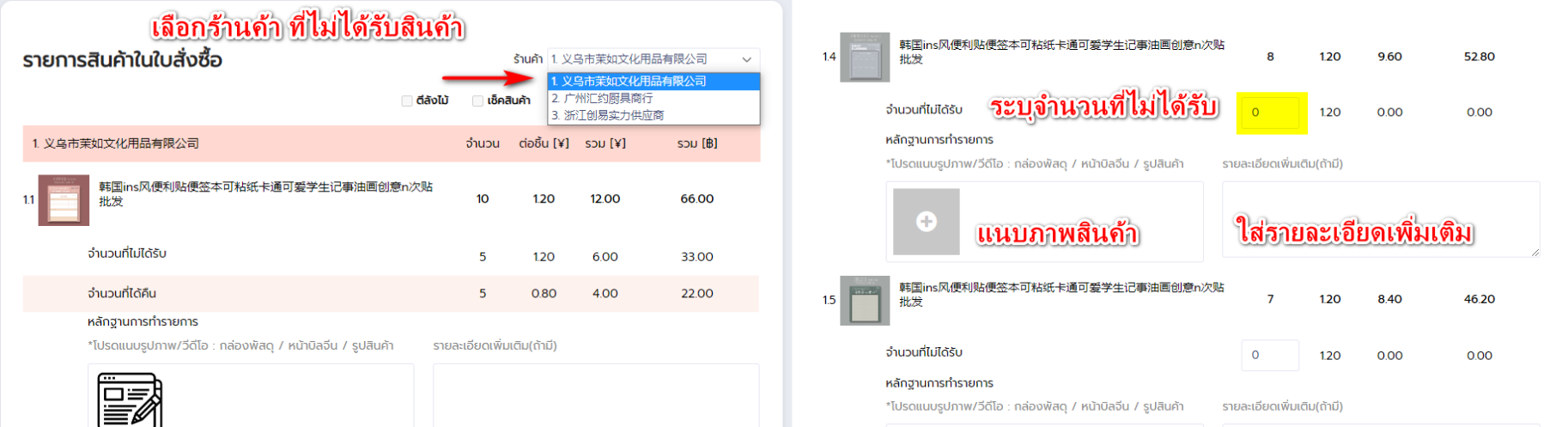 - รายละเอียด : เขียนรายละเอียดสินค้าที่ได้รับไม่ครบให้ถูกต้อง เช่น