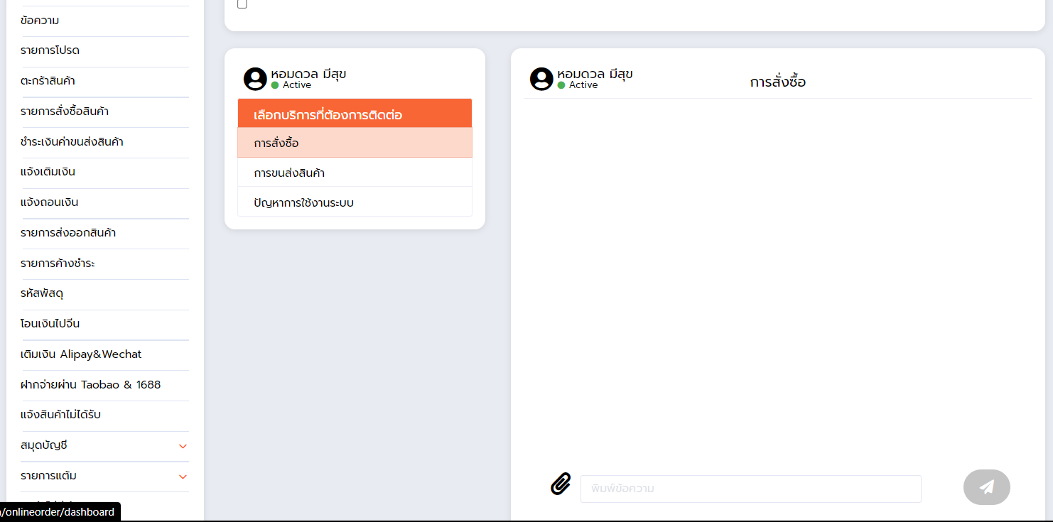 การเข้าสู่ระบบ การแก้ไขข้อมูลส่วนตัว วิธีติดต่อพนักงานผ่านระบบ วิธีการสั่งซื้อสินค้า วิธีเพิ่มเลขพัสดุในระบบ วิธีเช็คสถานะแจ้งส่งของ วิธีเติมเงินเข้าระบบ วิธีโอนเงินหยวนไปจีน วิธีเติมเงินอลีเพล วิธีแจ้งสินค้าพรีออเดอร์ได้รับไม่ครบ วิธีฝากจ่ายเงินเถาเป่า และ 1688 สมุดบัญชีและถอนเงินออกจากระบบ วิธีแลกแต้มสะสม วิธีแสดงความเป็นเจ้าของสินค้าในรายการสินค้าไม่มีเจ้าของ การจ่าหน้าผู้รับแยกตามประเภทสินค้าการเข้าสู่ระบบ