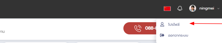 - เมื่อท่านเข้าสู่ระบบแล้ว จากนั้นกดเลือกเมนูชื่อผู้ใช้งานตรงมุมบนขวามือ จากนั้นกดเลือก