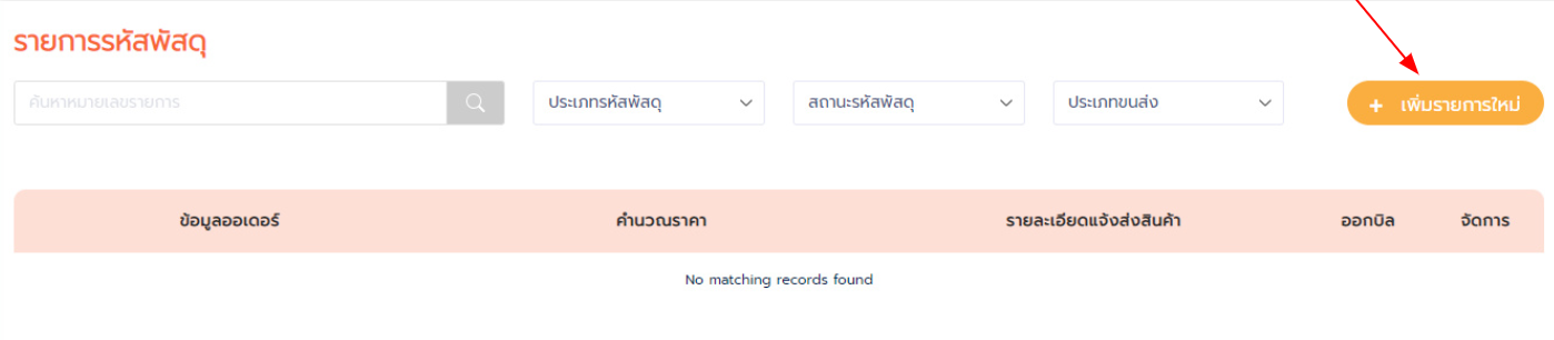 - ไปที่เมนู "รหัสพัสดุ" จากนั้นกดปุ่ม "เพิ่มรายการใหม่"
